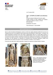 LA-CHAPELLE-LAUNAY (Loire-Atlantique, 44). Ancienne abbaye de Blanche-Couronne, église. Fouilles menées en 2023. Fragment de sculpture polychrome prélevé en motte, inv. F5139. Identification de la pierre