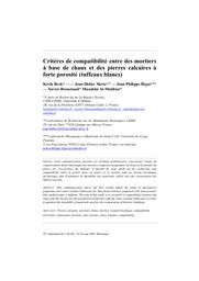 Critères de compatibilité entre des mortiers à base de chaux et des pierres calcaires à forte porosité (tuffeaux blancs) = Bordeaux