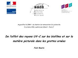 De l'effet des rayons UV-C sur les biofilms et sur la matière picturale dans les grottes ornées = Paris