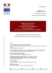 BOURGÈS, (A.) , GUIAVARC'H (M.), PARIS 4e (Paris, 75). Cathédrale Notre-Dame. Arc-boutant n° 18 et mur gouttereau : Essais de restauration. Préconisations au dessalement et à la consolidation, Nota : diffusion restreinte., LRMH, 2015