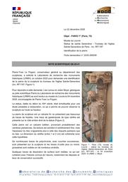 PARIS 1er (Paris, 75). Musée du Louvre. Statue de sainte Geneviève, trumeau de l’église Sainte-Geneviève de Paris. Identification de la pierre